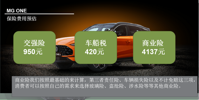 写在最后:综上,我们算的MG ONE每月的花费大概在1341元左右。作为一款主打年轻化、运动化的紧凑型SUV,MG ONE养车成本并不高,这对于初入职场的年轻消费者来讲是好事,另外再加上MG ONE比较亲民的价格,这款车型的综合实力还是相当强劲的。