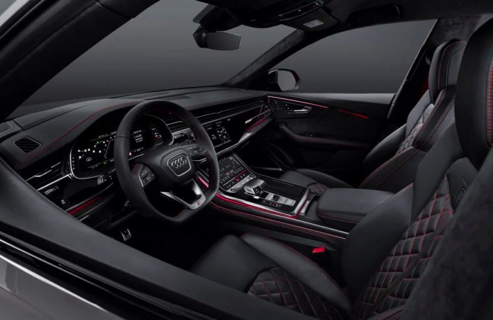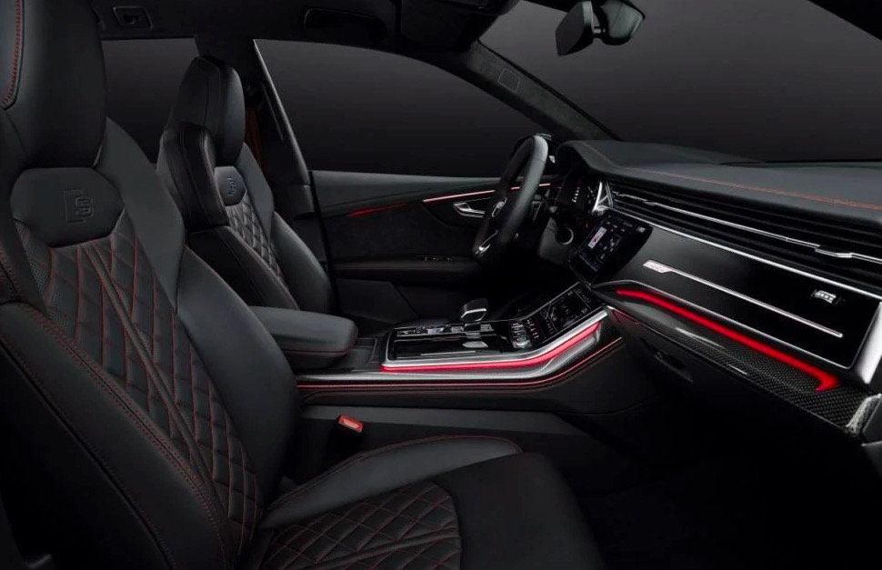 此外,两款新车均配备了21英寸铝合金轮毂,Q7可选22英寸,Q8可选23英寸。在奥迪Q7上,它的碳纤维包装已包含在标准设备中,因此改进之处更加引人注目。和涂在鲜红色的两个底盘上的制动卡钳一样,字母“ S”从后视镜的底部投射到地面上。